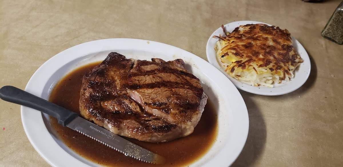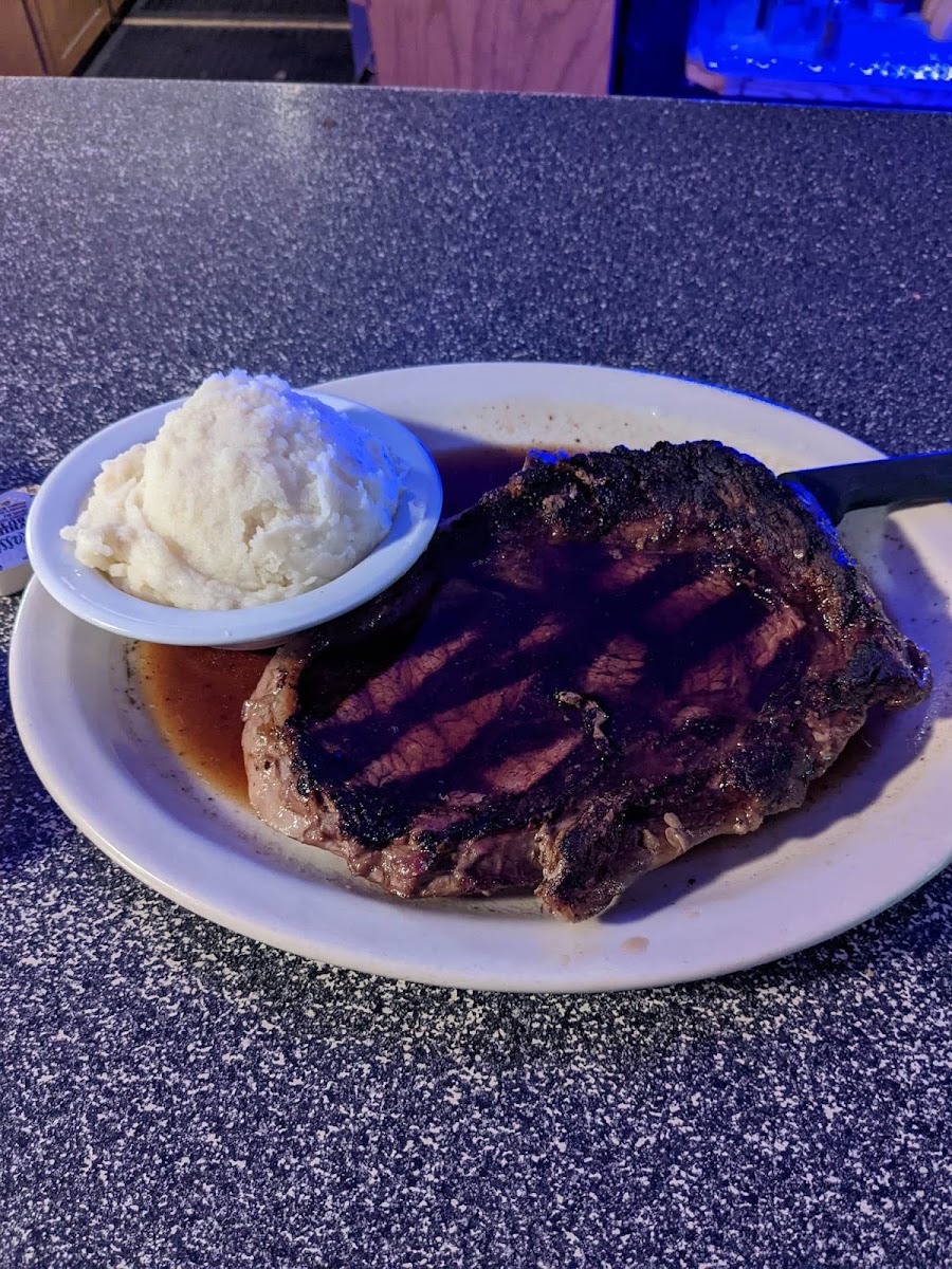 Prime Rib was very good. Wife got 8 pcs of Butterfly shrimp that were large. Been there a few times and NEVER had a bad meal. Soft serve ice cream finishes it off. Saturday nights best to make a reservation, still wait is usually no longer than 20 min. Just enough time to visit their bar for a round before supper. Nice small salad bar, and soups are very good also. So basically can't go wrong eating there.